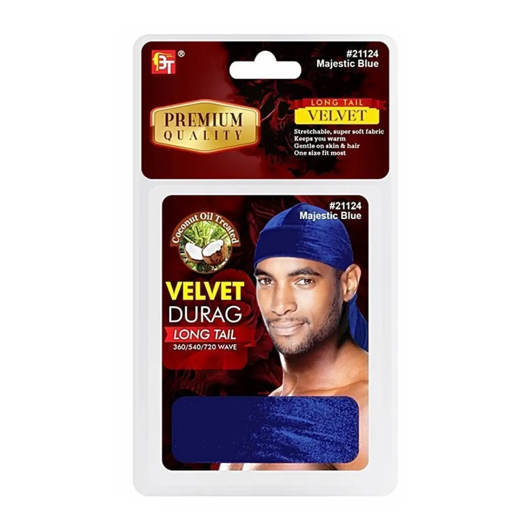 PREMIUM QUALITY COCONUT OIL TREATED VELVET DURAG WITH LONG TAIL