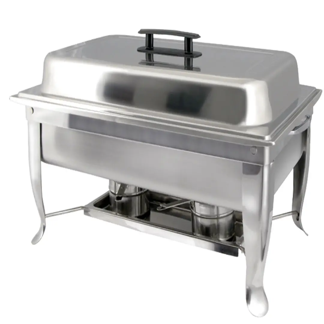 - Each chafer set includes water pan, food pan, frame, cover and two fuel holders
